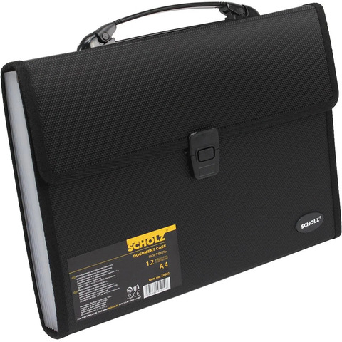 Портфель на 12 отделений с пластиковой застежкой, рельефный пластик с тканевой окантовкой, А4