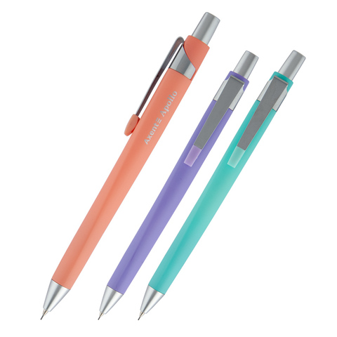 Карандаш механический Apollo. Цветной пластиковый корпус пастельных цветов. Твердость НВ. Встроенный ластик. Диаметр стержня 0,5 мм. Ассорти