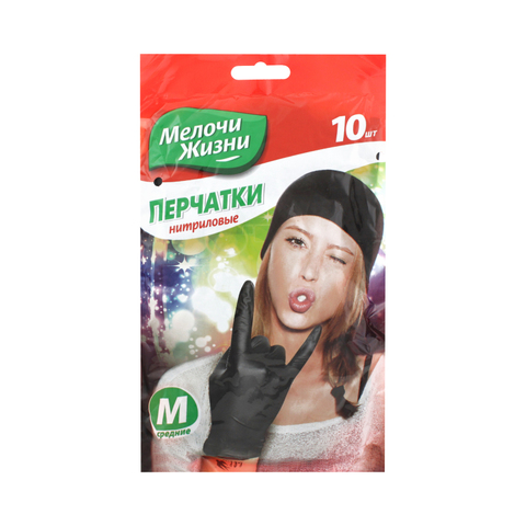 Ïåð÷àòêè óíèâåðñàëüíûå, îäíîðàçîâûå, íèòðèëîâûå, ðàçìåð Ì, 10 øò., ÷åðíûå